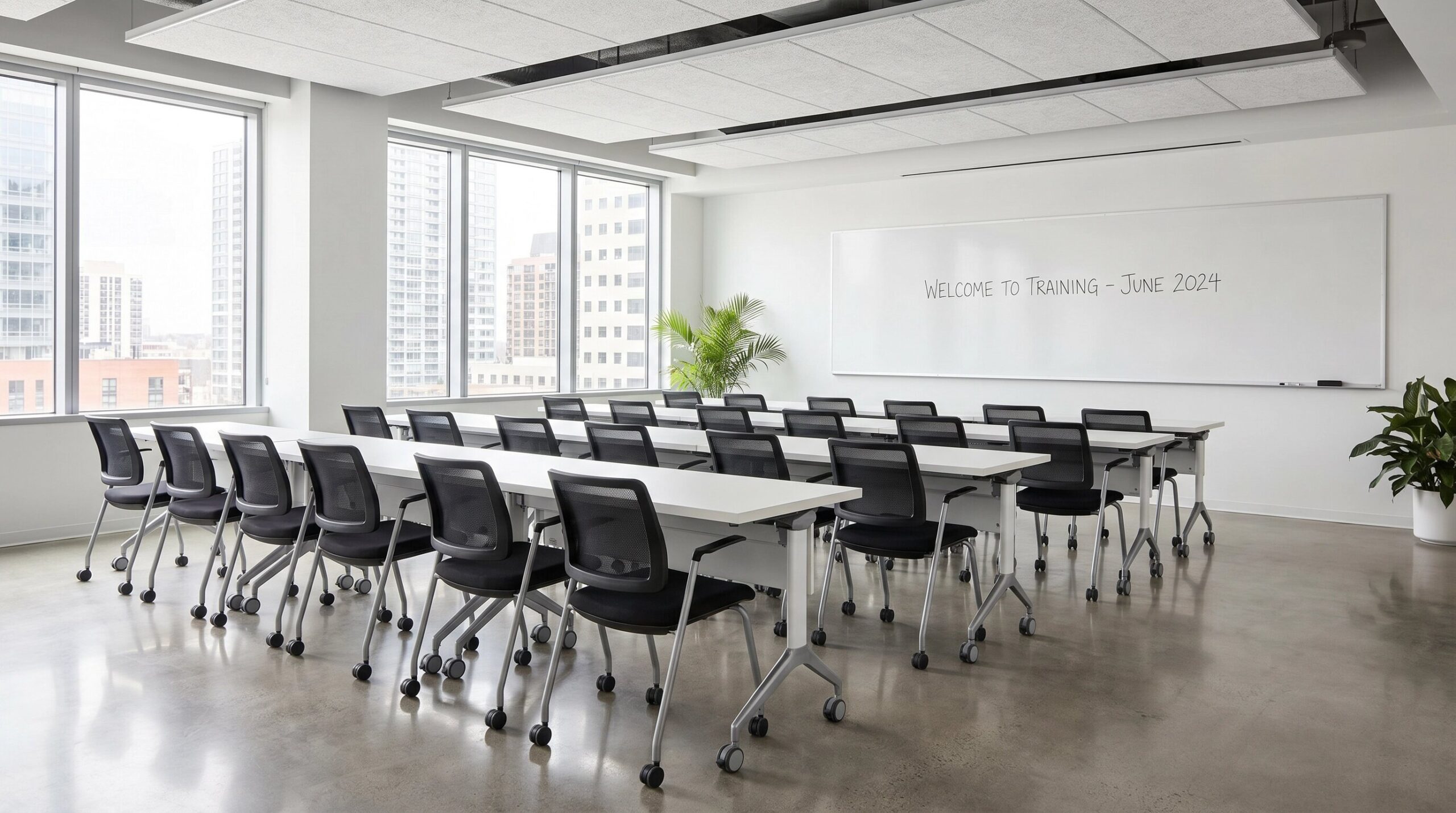 Ideal For: Training rooms, continuing education sessions, and flexible seminar spaces that evolve throughout the day.