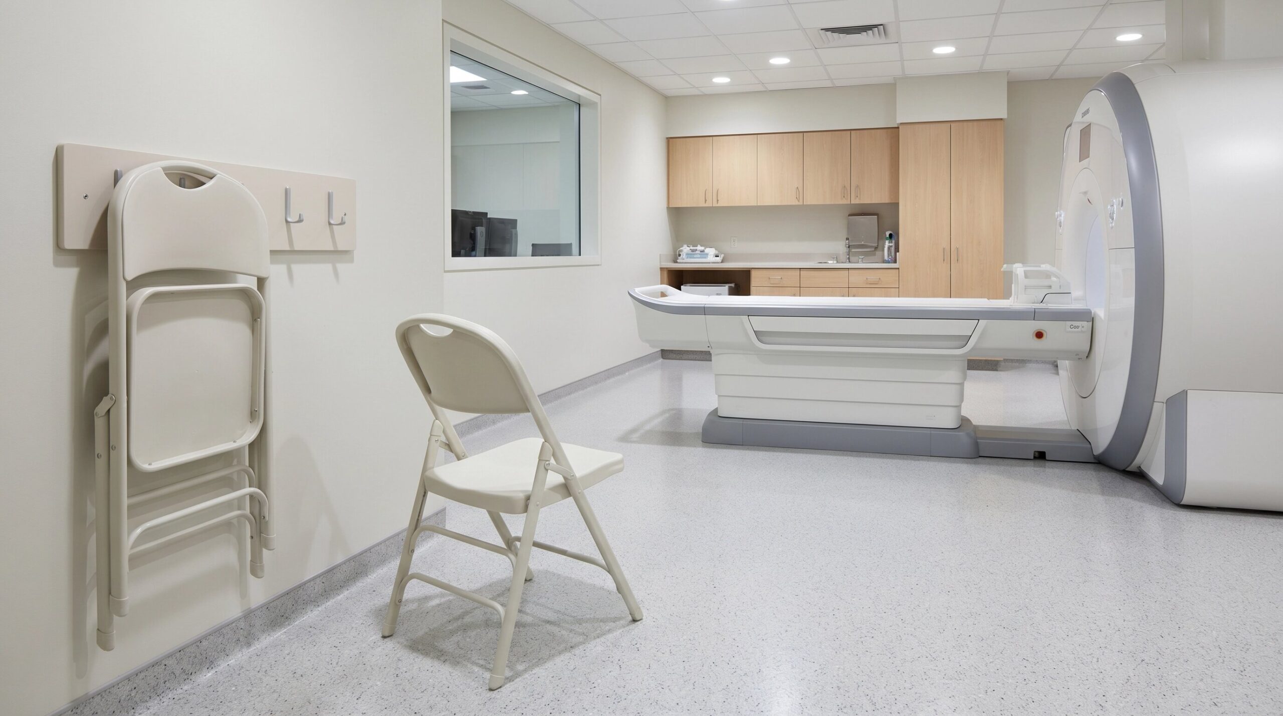 Simple, space-saving, and built for critical environments—this MRI suite includes the Folding Chairs in Milk, ready when extra seating is needed, and out of the way when it’s not.